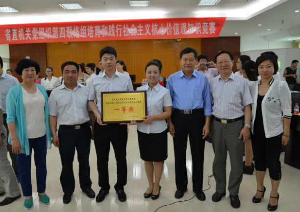 2014年5月21日在省廣電局24樓會(huì)議室成功舉辦了“培育和踐行社會(huì)主義核心價(jià)值觀知識(shí)競賽”。本活動(dòng)由省廣電局具體承辦,賽后比賽仲裁同一等獎(jiǎng)代表隊(duì)合影。