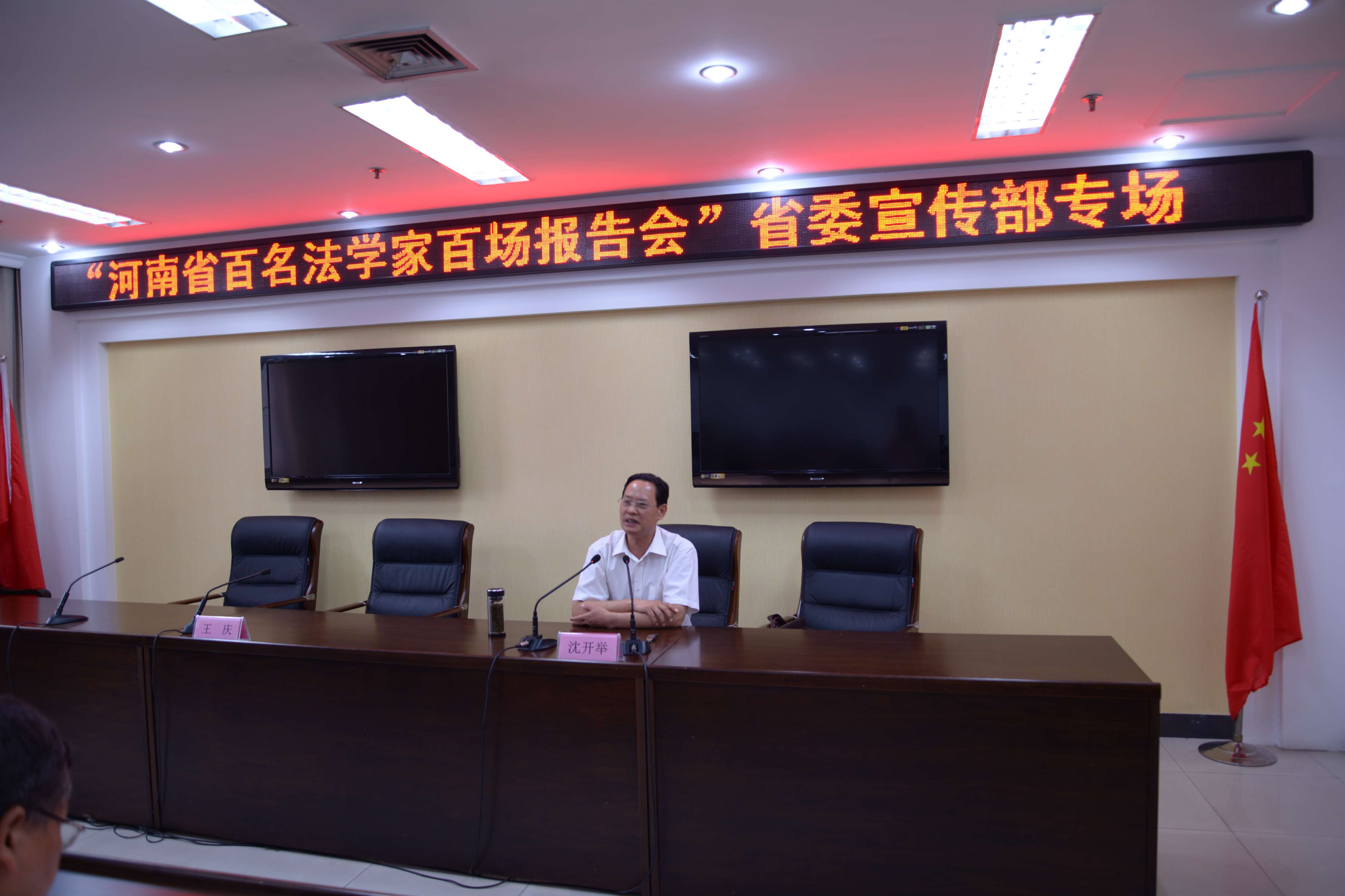 為更好地把握依法治國(guó)與加強(qiáng)黨的領(lǐng)導(dǎo)的關(guān)系,明確宣傳思想文化工作在推進(jìn)依法治國(guó)中的責(zé)任,根據(jù)省委組織部、宣傳部、政法委等聯(lián)合下發(fā)的《2015年河南省“百名法學(xué)家百場(chǎng)報(bào)告會(huì)”法治宣講活動(dòng)實(shí)施方案》,省委宣傳部機(jī)關(guān)于2015年8月14日(周五)下午舉行了“河南省百名法學(xué)家百場(chǎng)報(bào)告會(huì)”省委宣傳部專場(chǎng)。