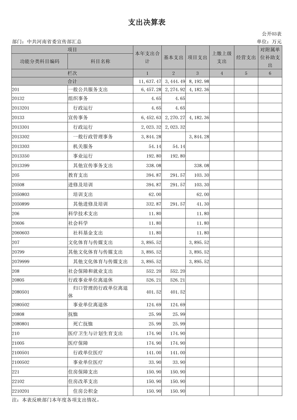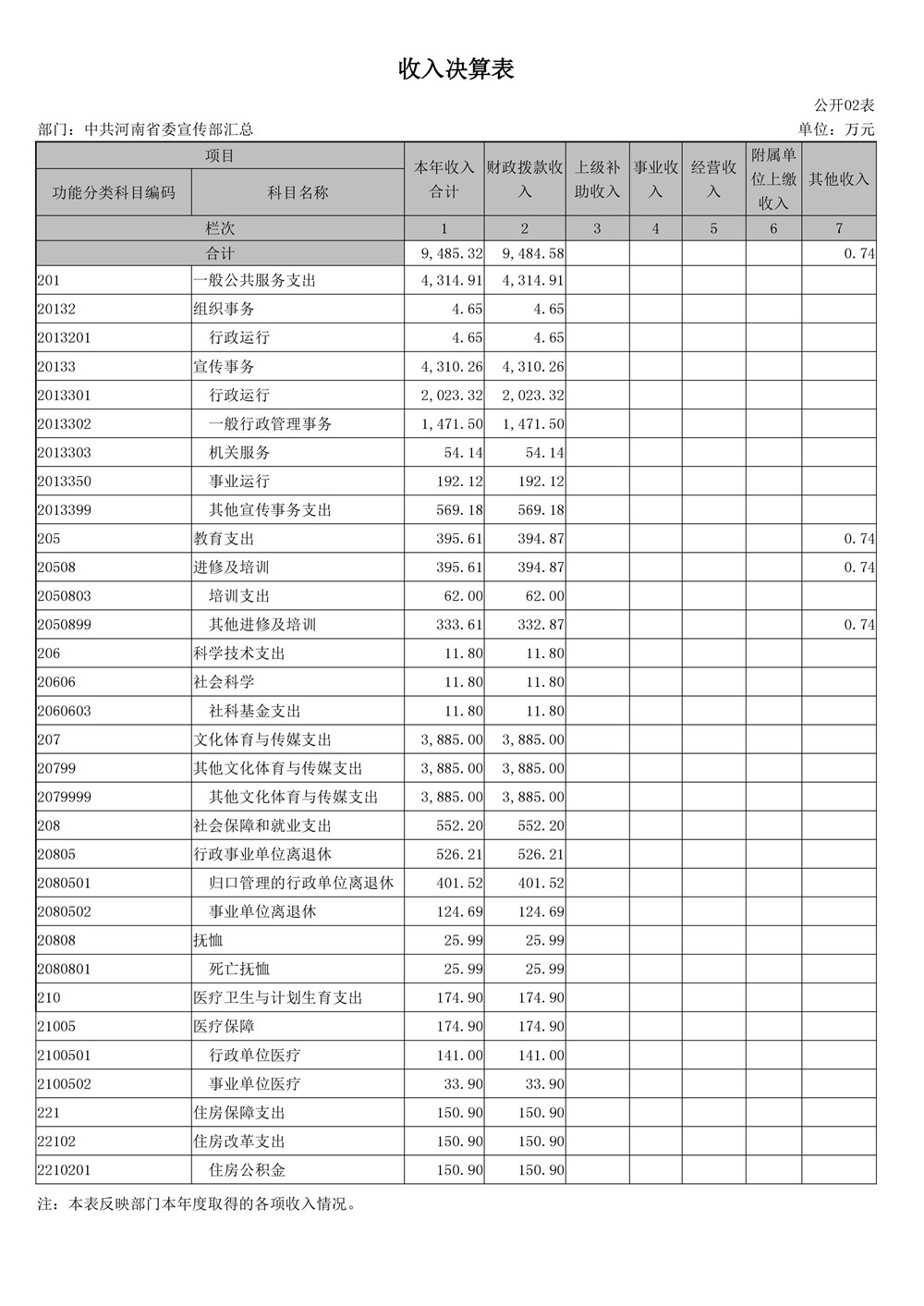 2016年度河南省委宣傳部部門決算公開